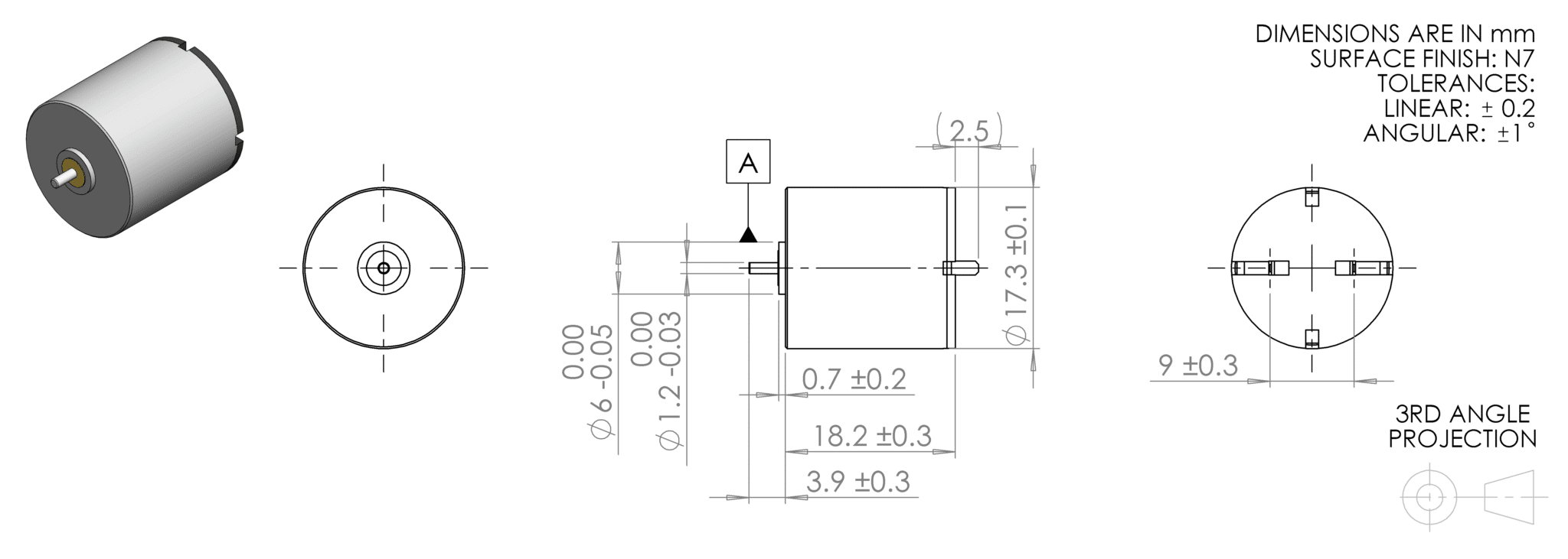 Coreless Ø17 x 18mm / single shaft / precious metal brushes