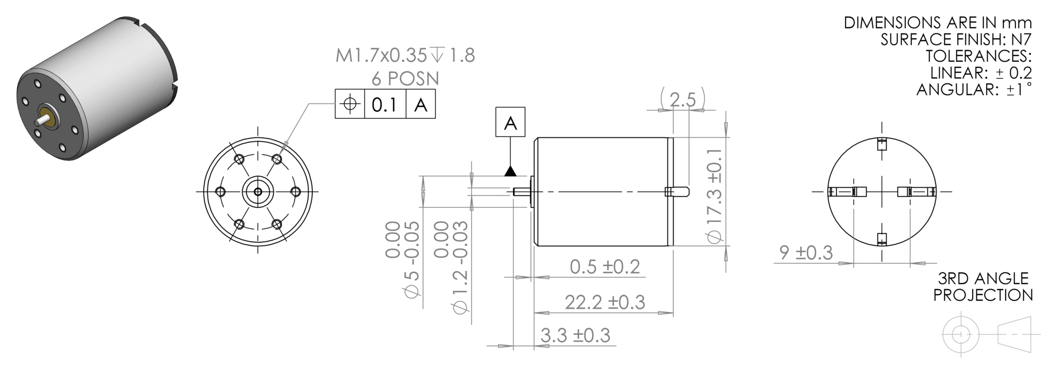8 | Coreless | 17 | 22.2 | 3.0 | 0.030 | 8015 | 11.30 | 3.43 | 3.50 | 3580 | 1.085 | Precision metal brushes |